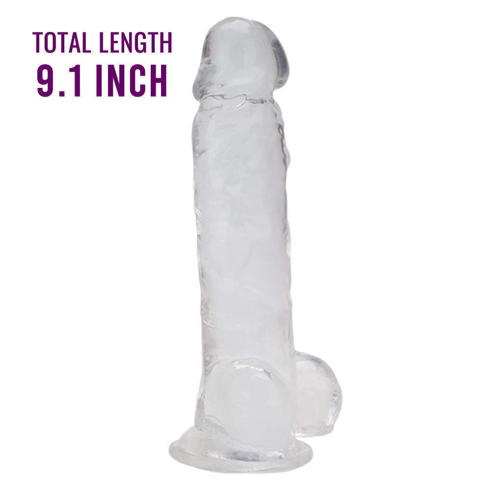 Kick your intimate nights up a notch with the 9-Inch Large Dildo with Suction Cup and Balls in Clear, a daring delight for experienced thrill-seekers! Reaching 9.1 inches total with a 6.7-inch insertable length and a bold 5.6-inch girth, this spirited companion brings the fun with a lifelike head, textured shaft, and plump balls that know how to hit the sweet spots. Secure it to any smooth surface with the sturdy suction cup for effortless hands-free action, and fine-tune the angle for a wave of pleasure. Crafted from high-quality TPE that’s gentler and safer than PVC, a dab of water-based lube transforms it into a silky smooth ride—add a 1.5-inch O-ring harness for an extra twist. Whether you’re on your own or with a partner, this clear stunner is your key to a bold, comfy escape! |