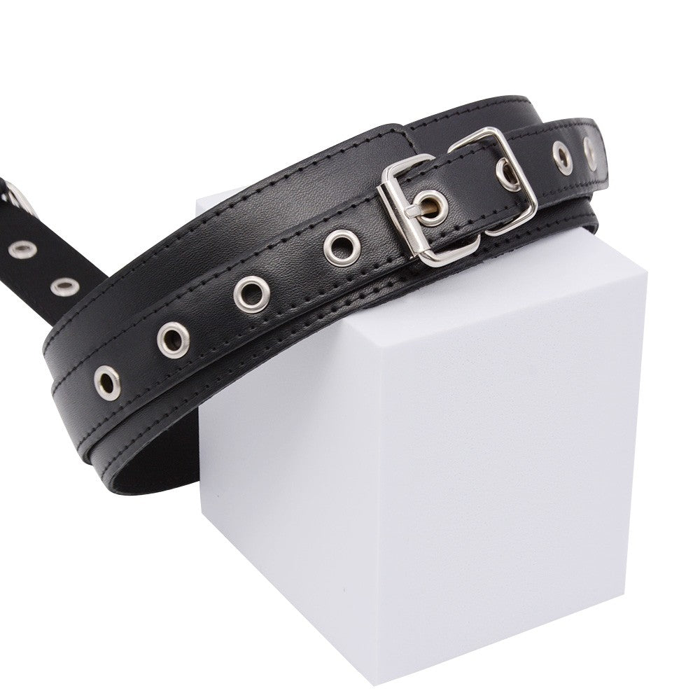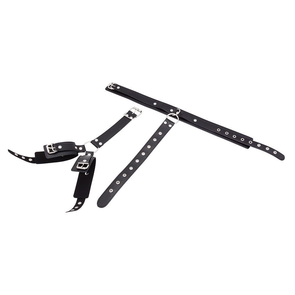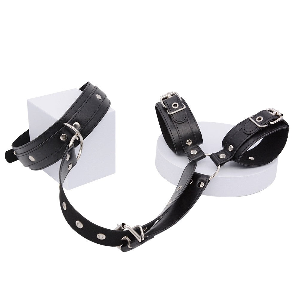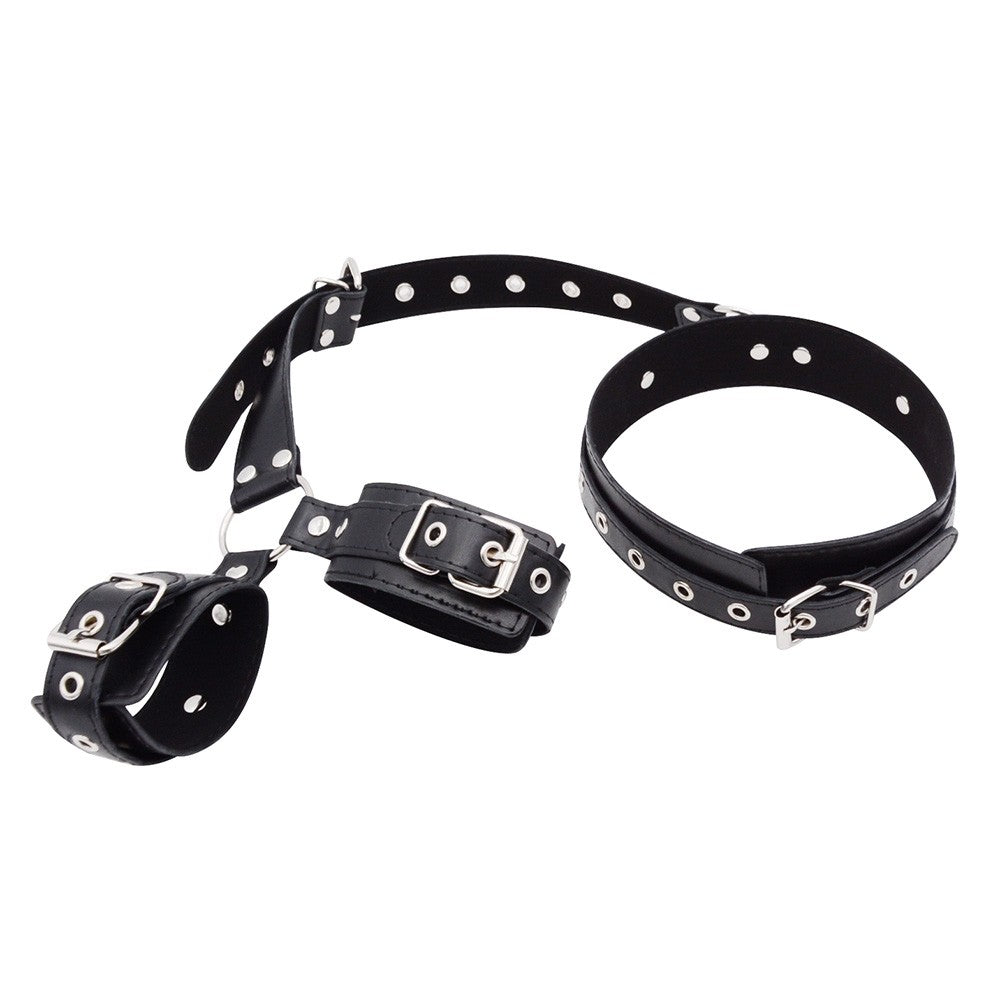 This adjustable wrist-to-collar restraint is all about connection—literally. A classic black leather design links the collar to the wrist cuffs, gently reminding your partner who’s in charge and how far they can move. The connector strap features multiple metal eyelets, making it easy to dial in the exact level of restriction you’re craving. Both the collar and cuffs fasten with sturdy roller buckles for a secure, no-nonsense fit. Whether you’re experimenting with light restraint or setting the mood for deeper submission, this piece keeps things comfortable, controlled, and just restrictive enough to make every movement feel intentional. Perfect for bondage beginners and experienced players alike, it’s a simple setup with endless possibilities. Dimensions: Collar adjustable: 14.6–20.5 inches (37–52cm) Wrist cuffs adjustable: 6.3–10.2 inches (16–26cm) Neck-to-wrist connector length: 10.2–18.9 inches (26–48cm) |