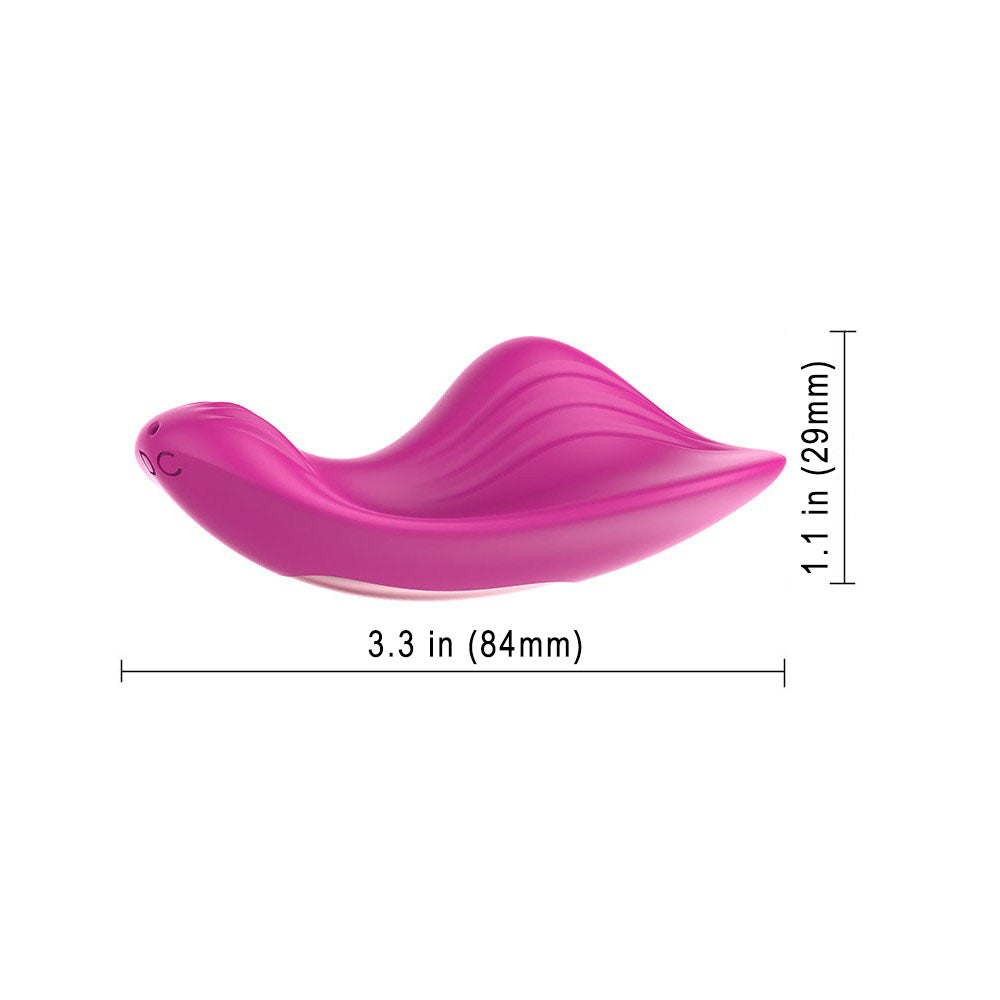 Meet your new favorite little secret—designed to flutter into place like a butterfly and stay exactly where the magic happens. This wearable panty vibrator features a sleek, curved shape that hugs your body just right. The raised internal stimulator rests snugly against your most sensitive area, delivering precise, teasing vibrations that build anticipation with every pulse. Slip it into your underwear, connect to the app, and take control from your phone—or hand it over and let someone else take the lead. With 9 vibration modes to explore, you can keep things soft and playful or turn up the intensity whenever the mood strikes. The ultra-quiet motor keeps everything discreet, so your little secret stays yours, no matter where you are. Crafted from silky, body-safe silicone, it feels smooth, safe, and oh-so-inviting. And with USB rechargeable power, it’s always ready when you are. A little tease. A lot of fun. And totally under your control. |