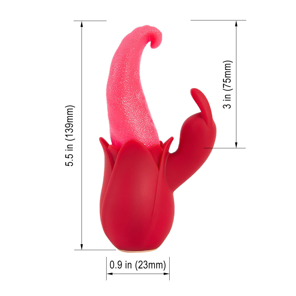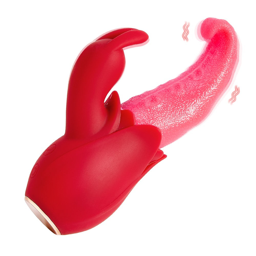 Sweet on the outside, seriously playful on the inside. This dual-action rabbit vibrator blends a teasing tongue design with classic rabbit ear stimulation for a perfectly balanced inside-and-out experience. The softly curved shaft features a flexible, upturned tip that mimics a gentle flicking motion, gliding smoothly and focusing on your most sensitive internal spot. On the outside, a pair of soft rabbit ears stays in close contact, delivering steady, fluttering stimulation that keeps everything in sync. Whether you prefer slow teasing or a more intense rhythm, the 10 licking modes let you switch things up with ease. Crafted from ultra-soft liquid silicone, it feels silky, flexible, and comfortable for longer sessions. For the best experience, apply plenty of water-based lubricant before use to enhance comfort and maximize sensation. What’s in the Box Dual Action Rabbit Tongue Vibrator × 1 Charging Cable × 1 Manual x 1 |
