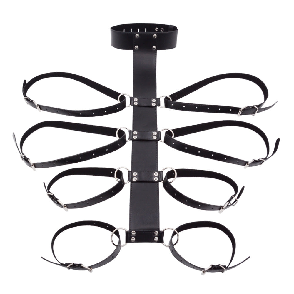Ready to surrender in style? This extreme neck-to-wrist restraint harness is designed for adventurous bondage enthusiasts looking to explore total control and submission. Adjustable straps and multiple cuffs let you experiment with a variety of positions while keeping your partner securely restrained. The sleek black harness combines a locked neck collar with four pairs of roller-buckle cuffs, allowing you to customize the height and position of each wrist restraint. Whether you’re teasing or taking play to the next level, this harness delivers both security and style. Crafted for comfort, durability, and full control, this harness is perfect for experimental BDSM play. Strap in, lock up, and enjoy a thrilling journey into the world of restraints. Dimensions: Neck adjustable: 13–17.7 in (33–45 cm) Upper arm straps adjustable: 15.4–28.3 in (39–72 cm) Forearm straps adjustable: 7.9–16.5 in (20–42 cm) |