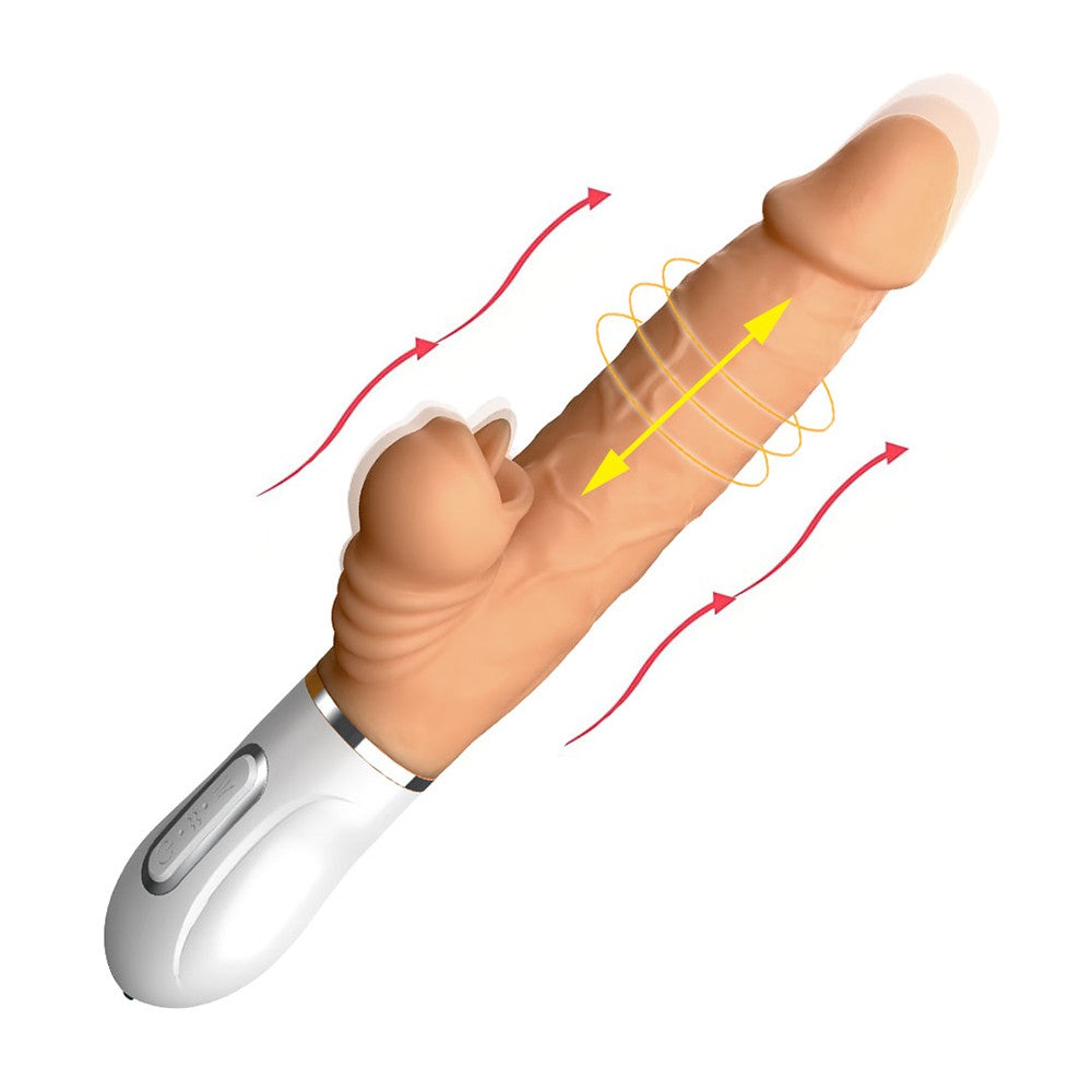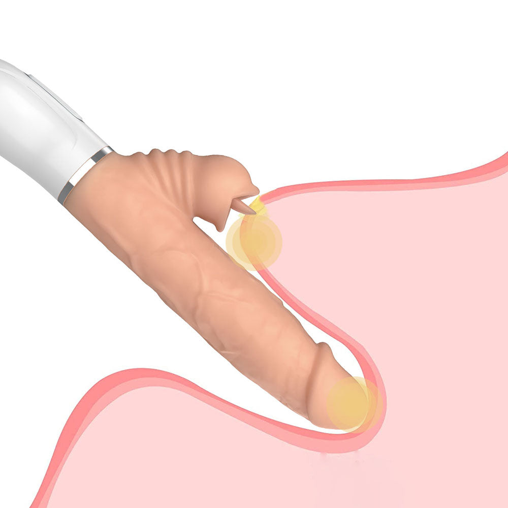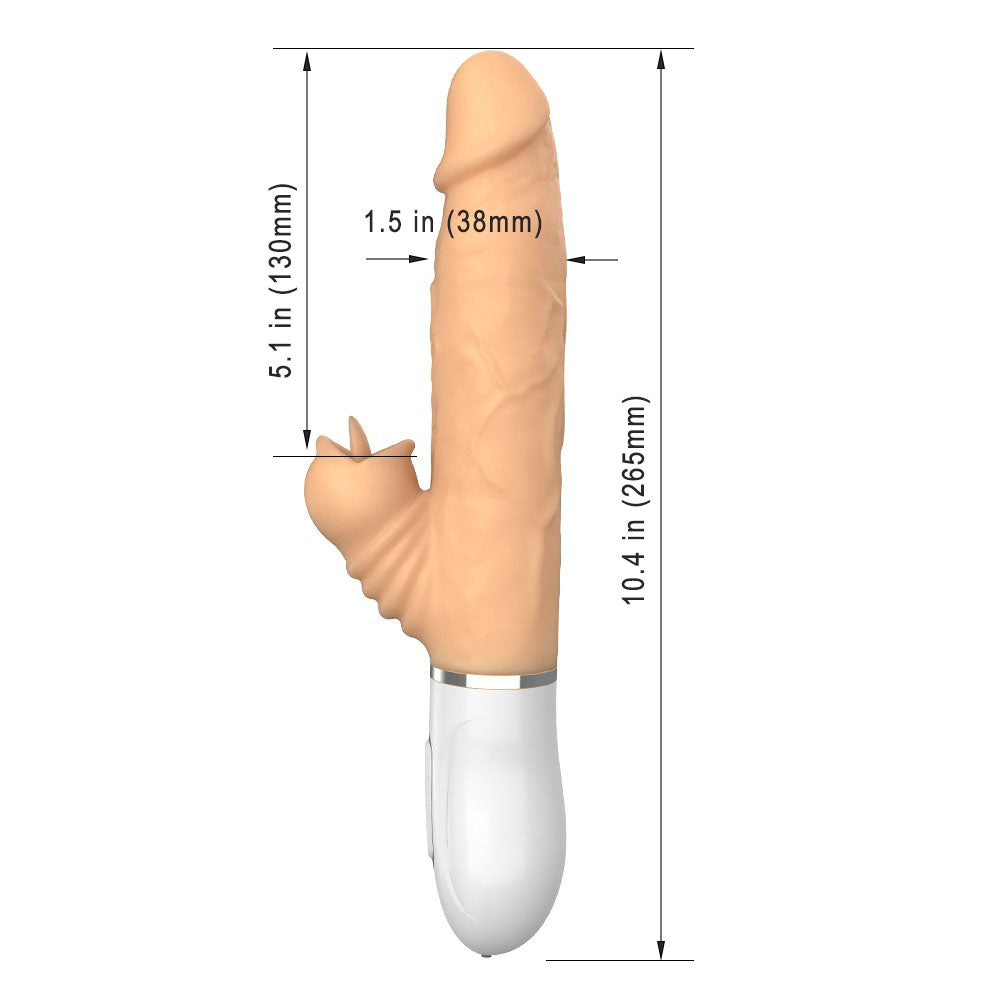 Discover the ultimate combination of thrusting, vibration, and external teasing with this handheld telescopic dildo. Featuring 12 vibration modes and 2 thrusting patterns, it allows you to personalize every session according to your mood. The built-in tongue stimulator adds targeted clitoral stimulation for an enhanced experience, while the telescopic motion delivers lifelike in-and-out sensations. Soft, body-safe silicone ensures comfort and safety, and the warming function adds a cozy, realistic touch. With an ergonomic silicone loop handle and quiet operation, this waterproof toy is easy to control and ready for use anytime. USB rechargeable, it provides up to 50 minutes of uninterrupted playtime. For maximum comfort and sensation, use a good amount of water-based lubricant before use. Dimensions Length: 10.4 in (265 mm) Insertable Length: 5.1 in (130 mm) Diameter: 1.5 in (38 mm) What’s in the Box Loverole Handheld Telescopic Vibrating Dildo with Tongue Licking & Heating × 1 Charging Cable × 1 Manual × 1 |
