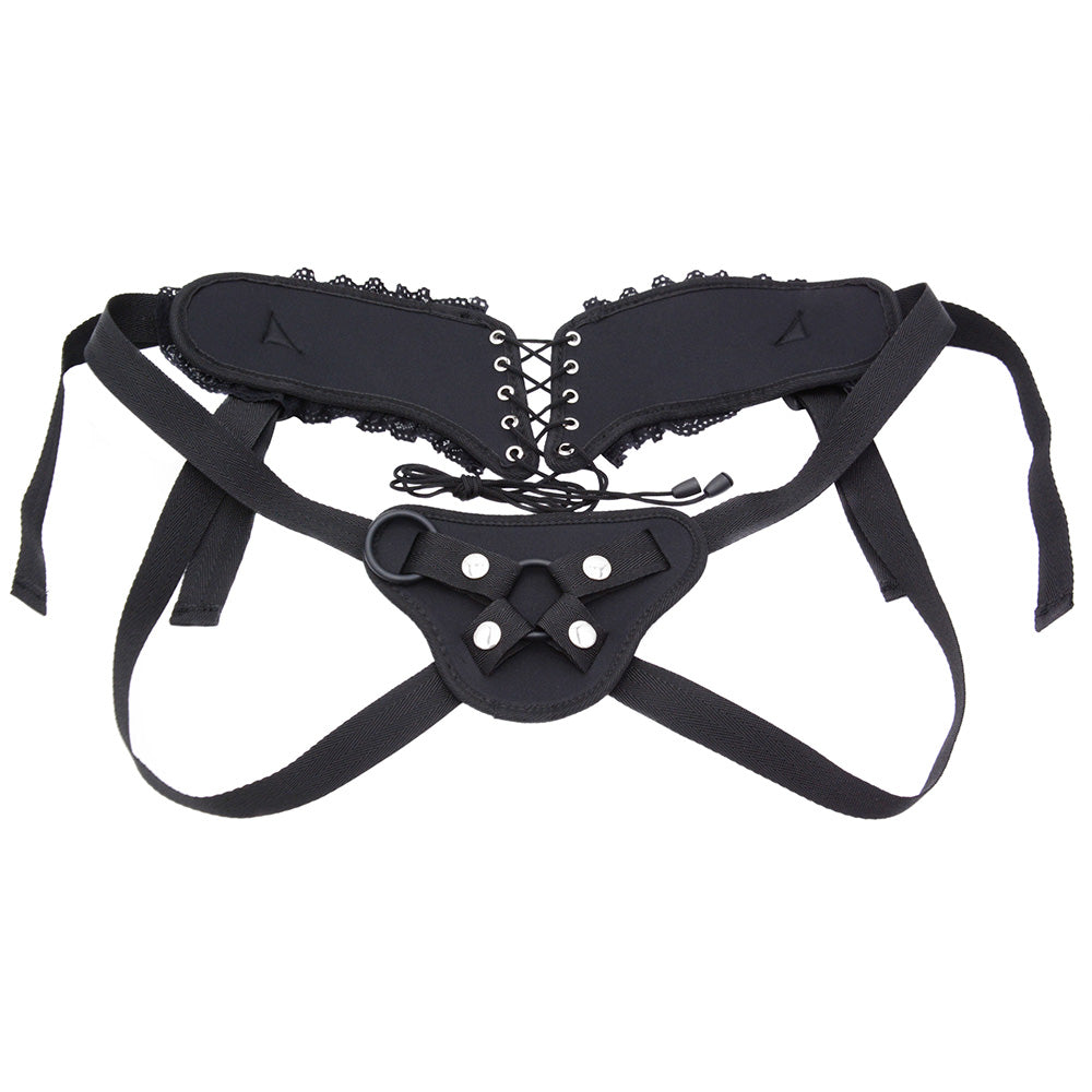Elevate your playtime with this elegant lace strap-on harness. Designed to sit low on the body, it naturally positions your favorite toys for maximum fun and intimate adventures. Equipped with two interchangeable O-rings (32mm and 38mm), this harness works with most flanged or suction-base toys up to 1.5 inches (3.8cm) in diameter. Adjustable waist (23.6–63 inches / 60–160cm) and hip straps (15.7–27.5 inches / 40–70cm) ensure a snug and secure fit for a wide range of body types. Made from durable nylon and adorned with lace trim, this harness combines style, comfort, and versatility, perfect for confident, playful strap-on or anal sessions. Dimensions: Waist adjustable: 23.6–63 inches (60–160cm), Hip adjustable: 15.7–27.5 inches (40–70cm) |