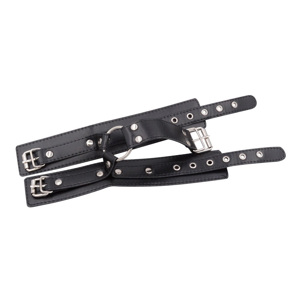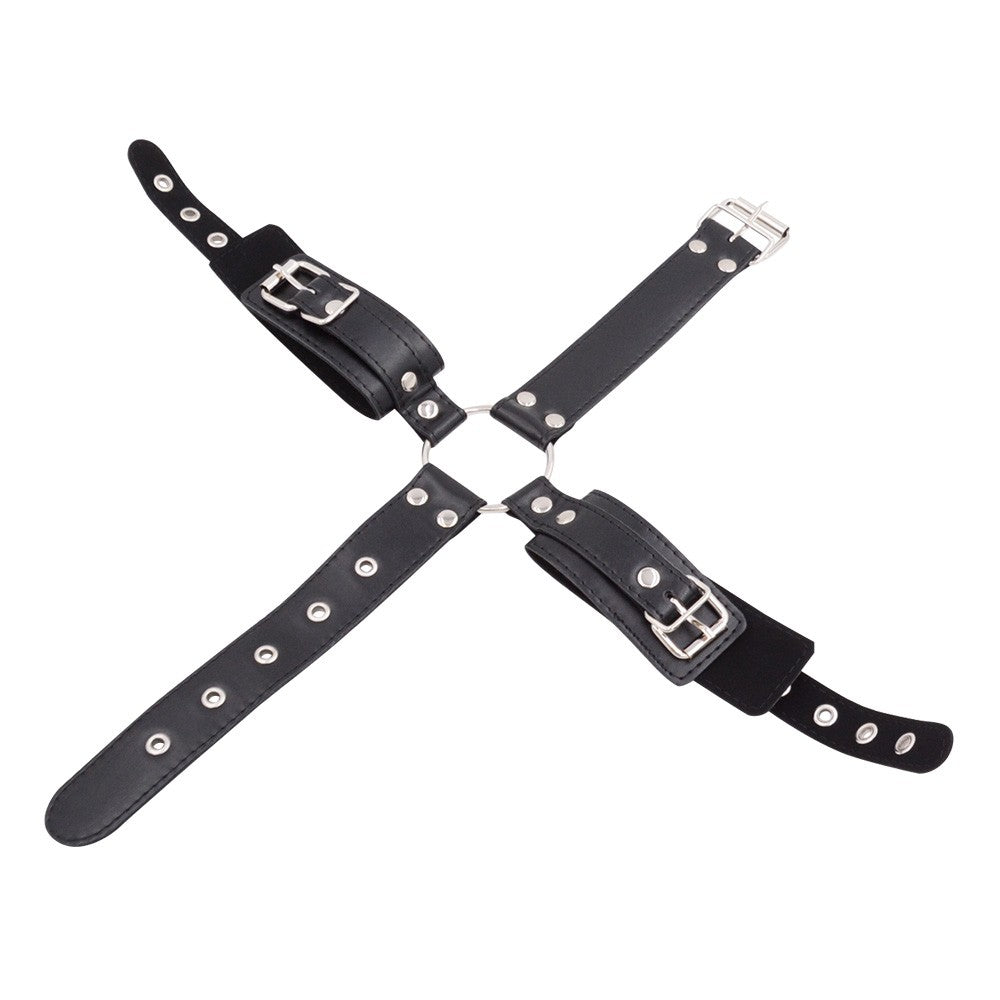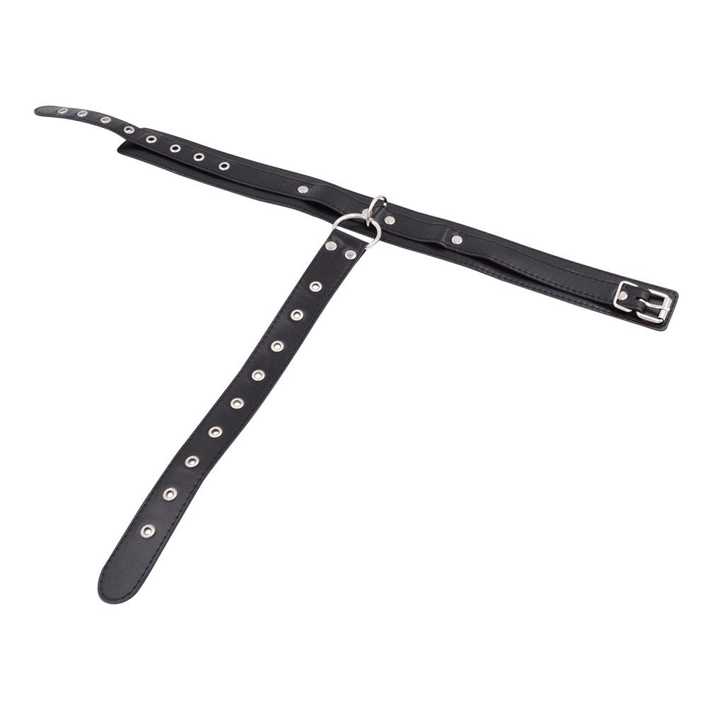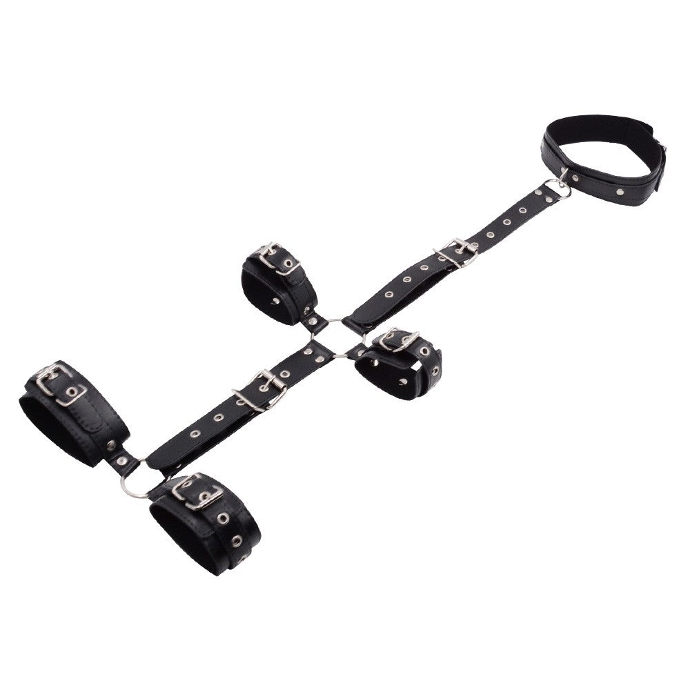 This leather back-bind restraint system is all about structure—and once it’s on, that structure is very clear. A solid leather collar sits at the top, acting as the anchor point for the entire setup. From there, a reinforced vertical spine strap runs straight down the back, becoming the backbone that keeps everything locked into place. The wrists are secured behind the body via a horizontal connecting strap fixed to the spine, forcing the arms into a classic restrained position that limits movement without relying on guesswork. Below that, the same spine strap continues downward to connect the ankle cuffs, creating a single, unified restraint system from neck to ankles. Every movement pulls against the same central line—simple, effective, and very unforgiving. Each cuff features adjustable roller buckles and multiple eyelets, allowing you to dial in both fit and restriction level. The wide leather design helps distribute pressure evenly, making longer scenes more manageable while still delivering that unmistakable sense of control. Finished with smooth, polished metal hardware, this set is ideal for players who appreciate clean restraint mechanics, clear power dynamics, and zero slack. Dimensions: Collar adjustable: 14.2–20.9 in (36–53 cm) Neck-to-wrist connection: 9.1–18.1 in (23–46 cm) Wrist cuffs adjustable: 6.3–9.4 in (16–24 cm) Wrist-to-ankle connection: 7.5–11.8 in (19–30 cm) Ankle cuffs adjustable: 6.7–11.0 in (17–28 cm) |