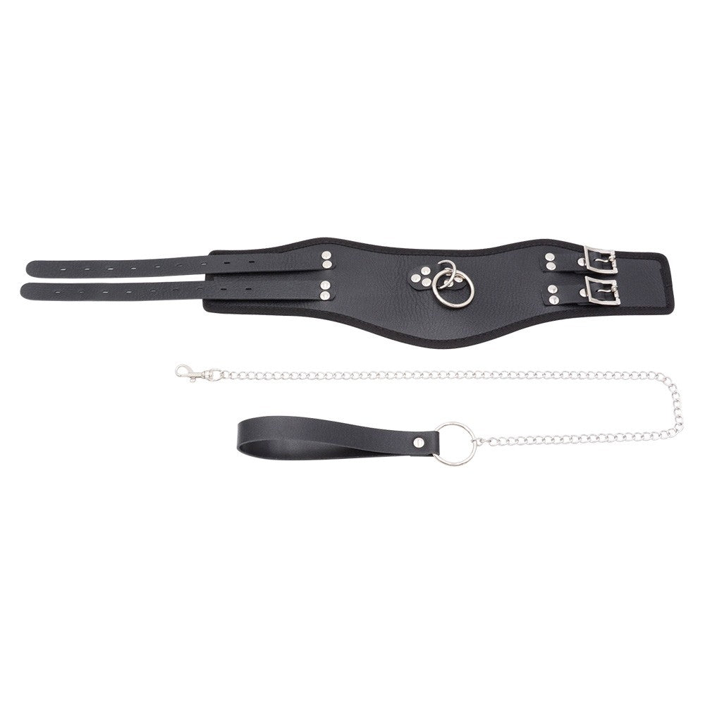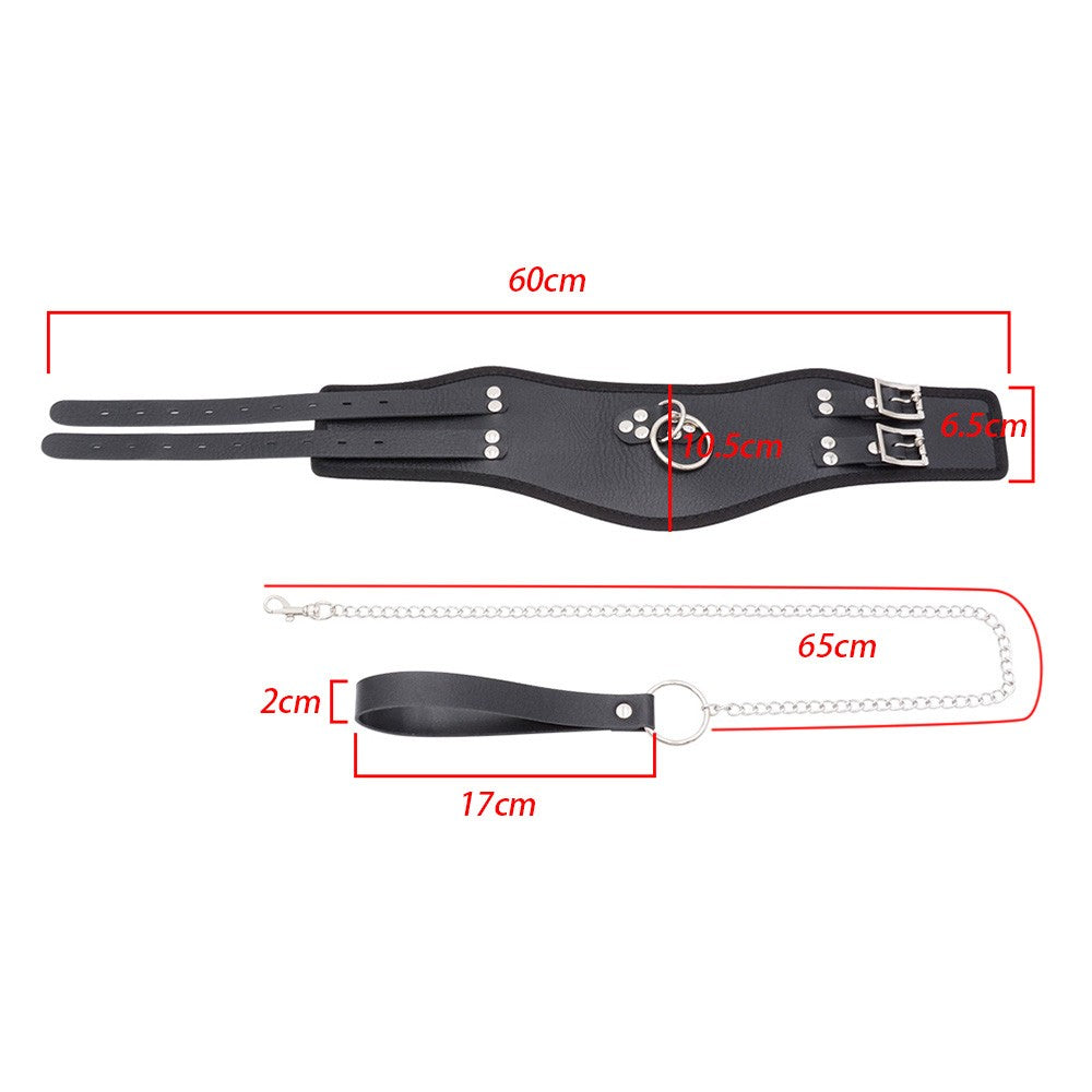 Step up your pet play or bondage sessions with this leather bondage collar and metal chain set. Made from soft PU leather, the wide collar sits comfortably around the neck while two sturdy straps with roller buckles keep it secure and durable. The collar features a built-in metal O-ring, making it easy to attach ropes, chains, or other restraint gear. An included 85cm (33.5") metal leash gives you precise control and adds a playful yet commanding touch to your scenes. Perfect for couples exploring pet play, dominance, or guided restraint, this set combines style, comfort, and control for unforgettable experiences. Size & Weight Collar total length: 23.6" (600 mm) Neck adjustable range: 14.2–18.9" (360–480 mm) Metal chain length: 33.5" (850 mm) Handle length: 6.7" (170 mm) (This product does not include a lock.) |