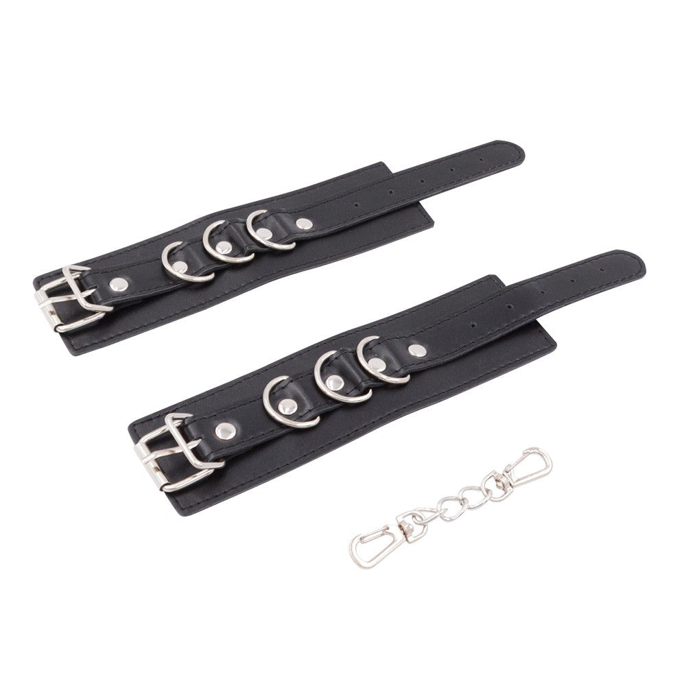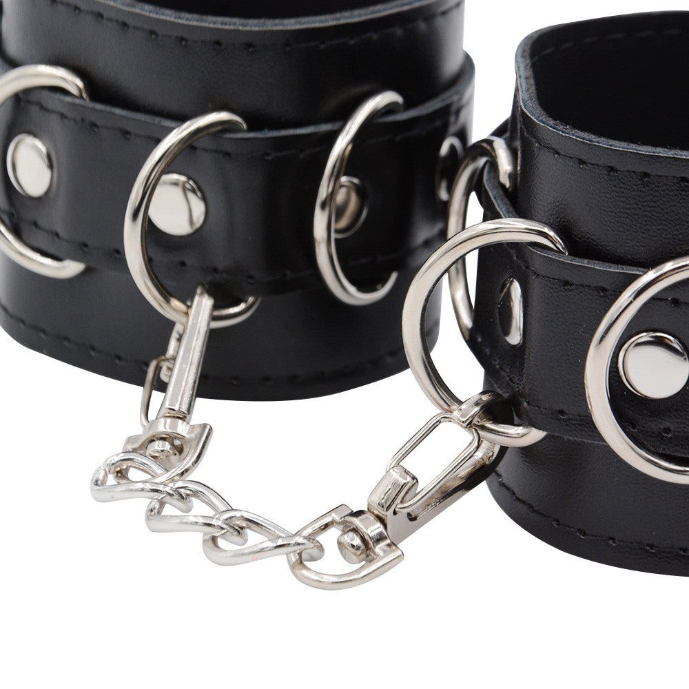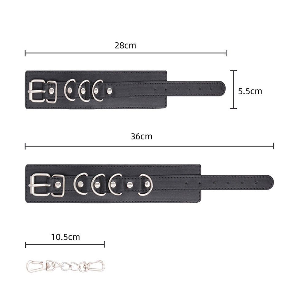This leather wrist and ankle cuffs set keeps things straightforward, versatile, and deliciously effective. With two wrist cuffs and two ankle cuffs included, it delivers everything you need for classic bondage scenes—no clutter, just confident restraint. Made from quality leather and secured with sturdy roller buckles, each cuff adjusts smoothly while staying firmly in place. The wrist cuffs feature three D-rings, and the ankle cuffs come with four D-rings, giving you plenty of attachment points for chains, leashes, or other BDSM accessories. Whether you’re building a restrained pose or adding extra control to an existing setup, this set plays well with others. Clean lines, solid hardware, and endless possibilities—sometimes the simplest tools create the most unforgettable moments. Dimensions: Wrist cuff total length: 11 in (280 mm) Wrist adjustable range: 5.9–9.1 in (150–230 mm) Ankle cuff total length: 14.2 in (360 mm) Ankle adjustable range: 7.5–11.4 in (190–290 mm) Connecting chain length: 4.1 in (105 mm) |