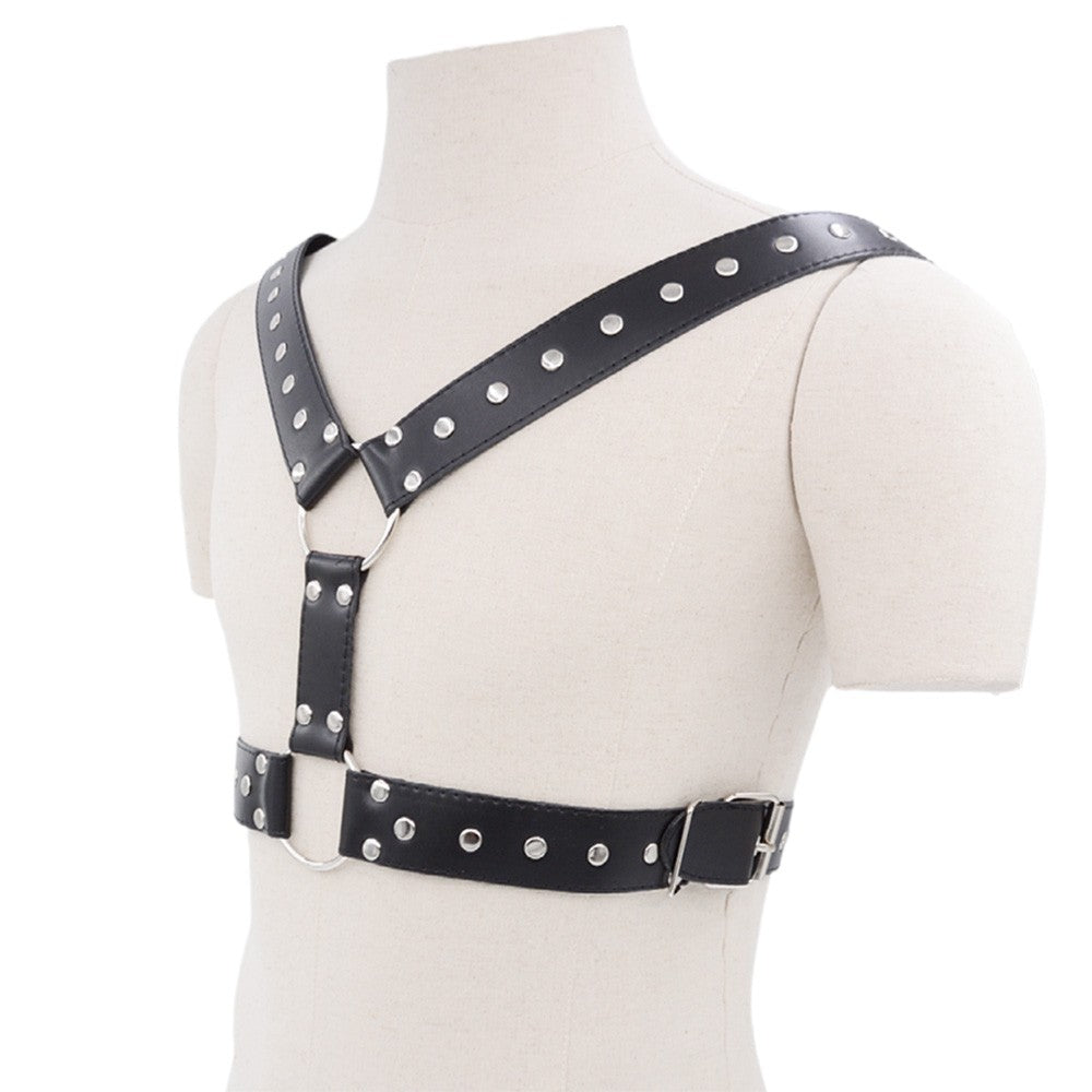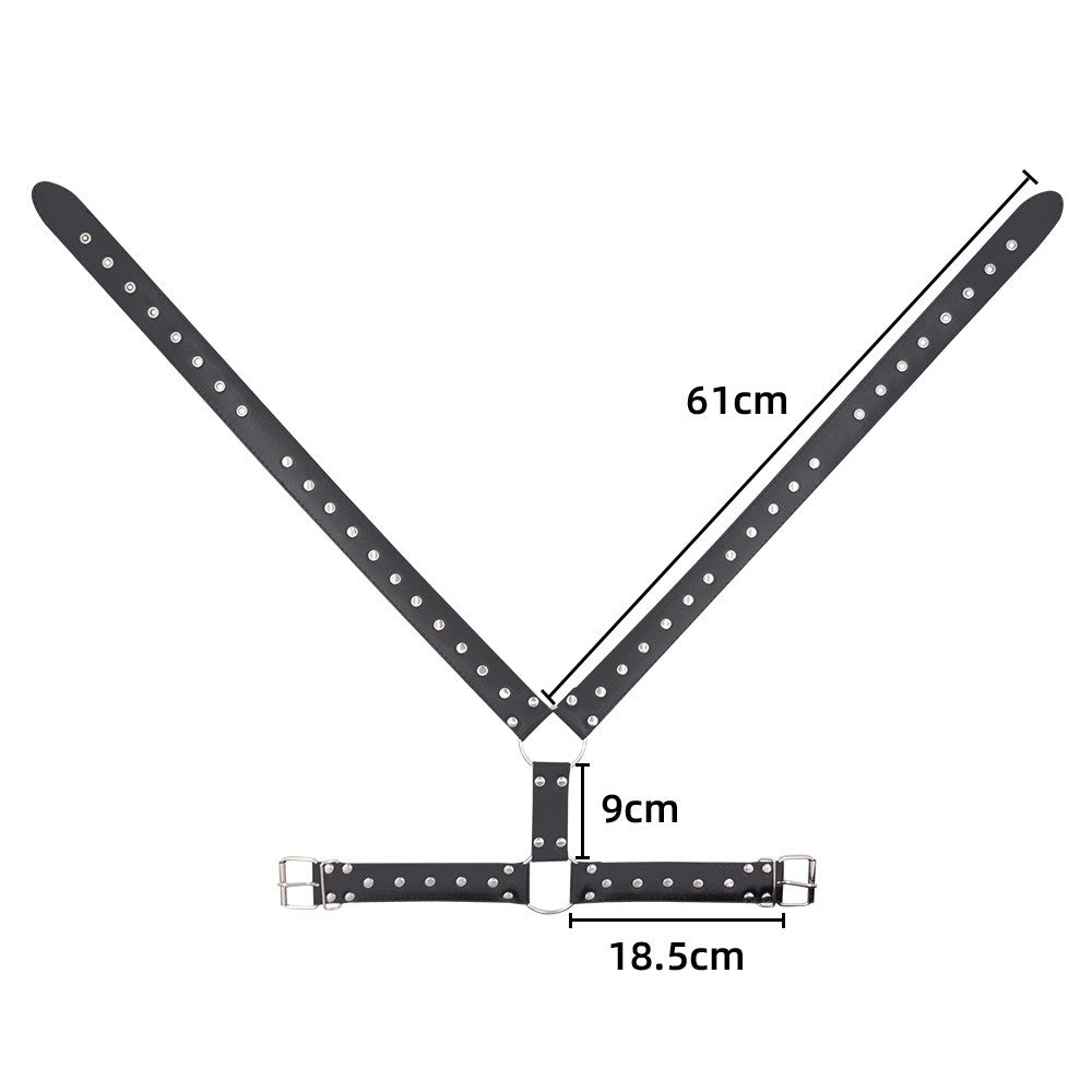 Unleash your inner rebel with this men’s gothic punk chest harness! Crafted from high-quality PU leather, it combines edgy rivets and sturdy O-rings for a look that’s equal parts daring and stylish. Perfect for club nights, fetish parties, or spicing up your roleplay wardrobe. The Y-shaped design accentuates your chest and shoulders while the adjustable straps ensure a comfortable fit for most body types. Whether you’re rocking it for a night out or exploring BDSM play at home, this harness brings confidence and attitude to every moment. Easy to wear, easy to flaunt, and built to last, this chest harness is your go-to accessory for making a bold statement. Dimensions: Maximum chest size: 42.5 in (1080 mm) |