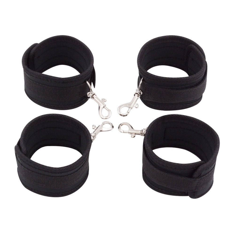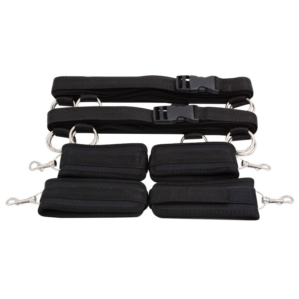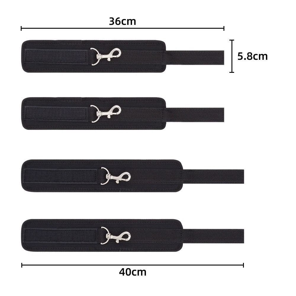 Turn any bed into a playground with this multi-position bed bondage restraint system. Designed for flexibility and comfort, this setup lets you explore countless restraint positions without permanently attaching anything to your furniture—or explaining awkward hardware to guests later. The soft yet durable webbing straps wrap securely around beds, doors, or furniture, while built-in padding keeps things comfortable even during longer sessions. Each strap features multiple metal O-rings, giving you precise control over positioning and making it easy to adjust restraint angles on the fly. Adjustable wrist and ankle cuffs let you mix and match restraint styles, whether you’re going for playful teasing or full-body control. Easy to set up, quick to adjust, and endlessly adaptable, this system is perfect for couples looking to expand their bondage creativity with minimal effort and maximum fun. Size & Fit Bed strap length: 18.1" (460 mm) O-rings per strap (top & bottom): 7 each Wrist adjustable range: 9.4–12.2" (240–310 mm) Ankle adjustable range: 9.8–13.0" (250–330 mm) |