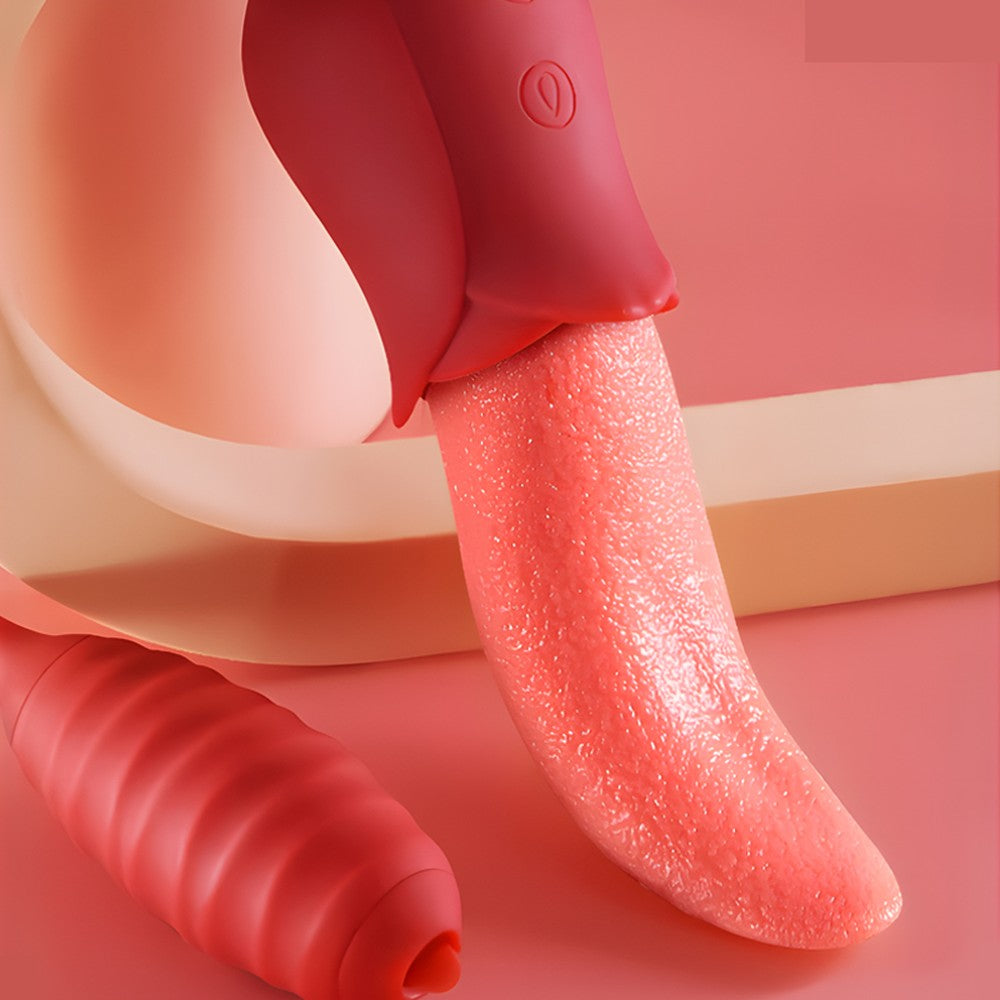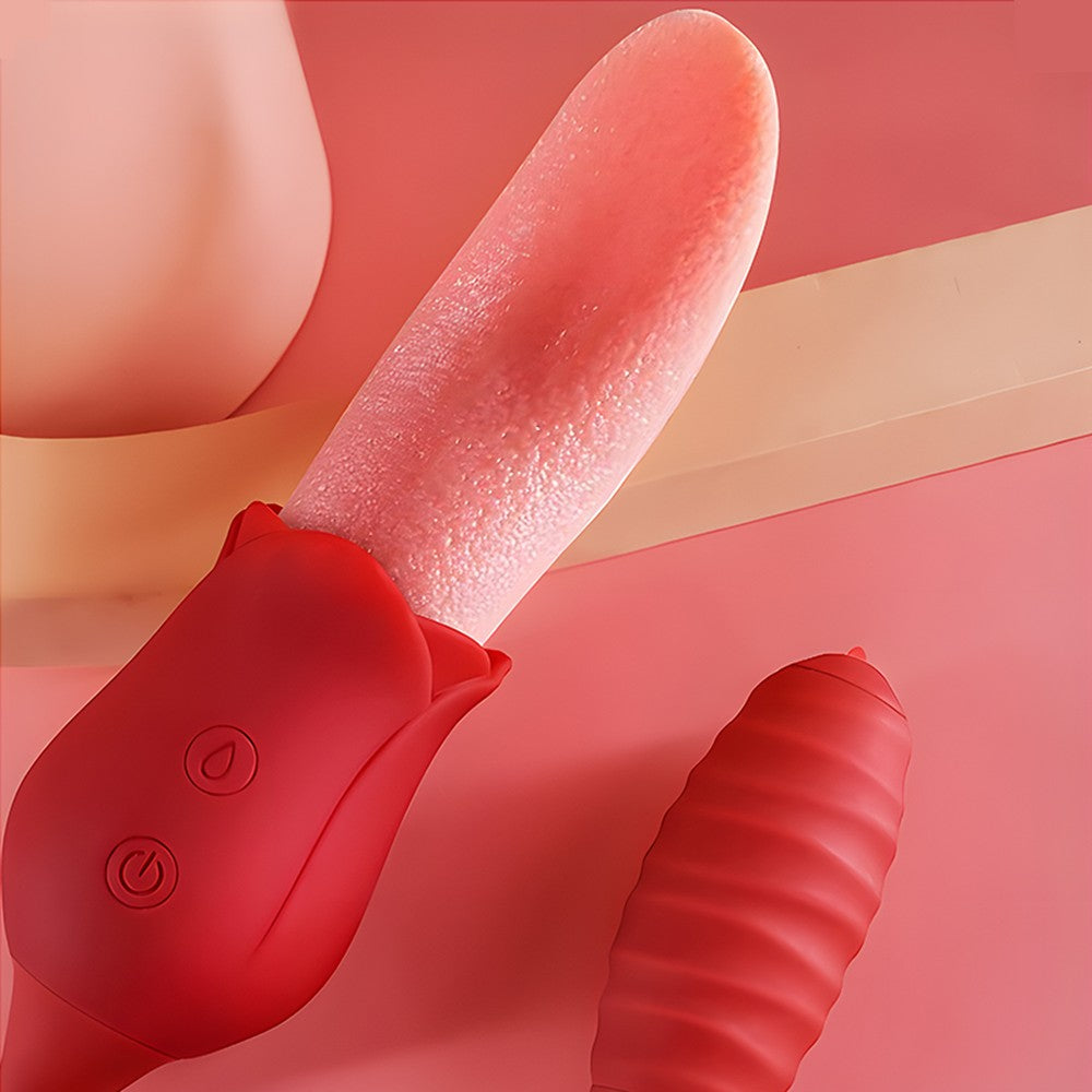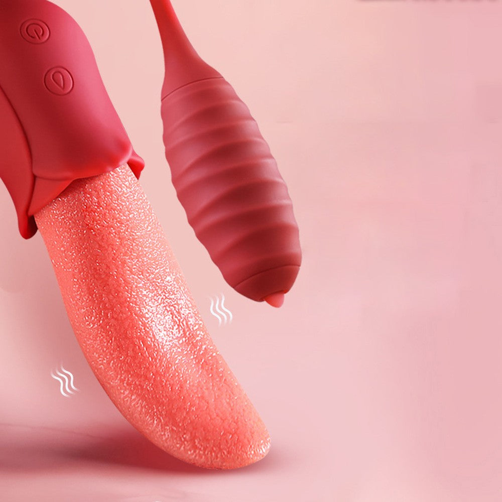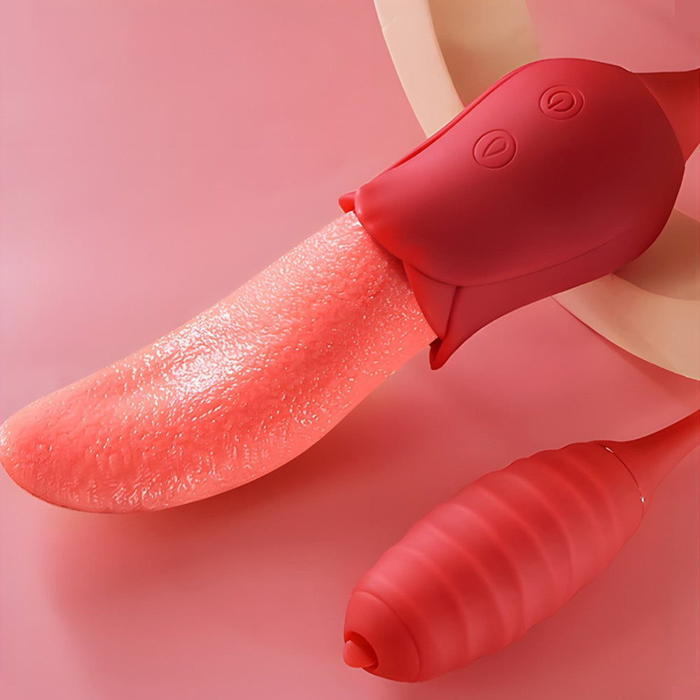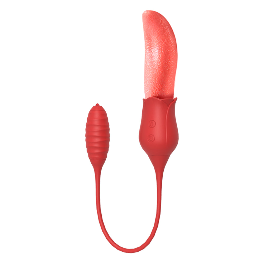 Double the fun, double the teasing! This 2-in-1 vibrator features a soft, textured rose tongue on one end and a powerful bullet on the other, connected by a flexible silicone cord. The tongue flicks, twists, and teases at high speed, perfect for clitoral or nipple play, or even gentle G-spot exploration. Meanwhile, the bullet vibrates intensely inside, with a tiny tip that mimics tongue-like stimulation to tease any sensitive spot. Switch between 10 combined modes for sensations that are playful, intense, or anywhere in between. Made from silky, medical-grade silicone, it’s soft, safe, waterproof, and whisper-quiet. Whether for solo sessions or playful couple fun, this little duo is ready to thrill. For the best experience, apply plenty of water-based lubricant before use to enhance comfort and maximize sensation. Dimensions: Length: 6.1 in (155 mm) Width: 1.8 in (46 mm) Insertable Length (bullet end): 2.8 in (72 mm) What’s in the Box 2-in-1 Rose Tongue & Bullet Vibrator × 1 Charging Cable × 1 Manual × 1 |