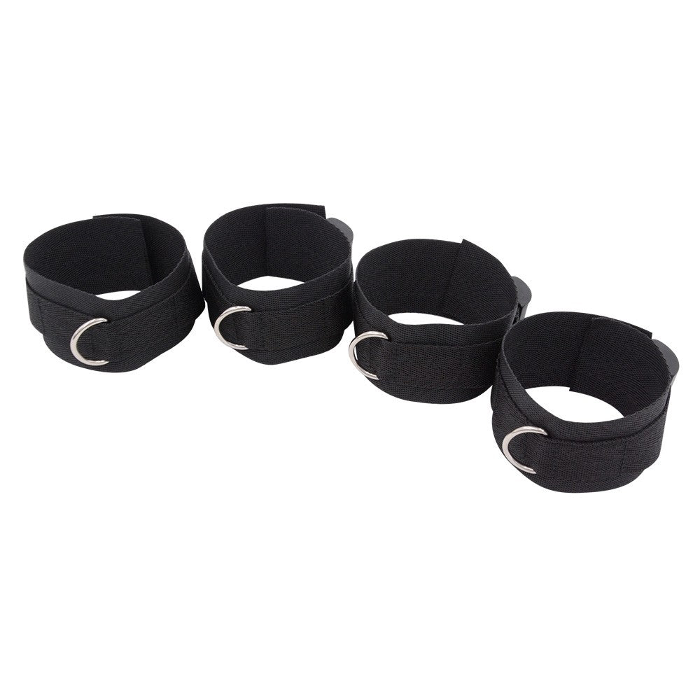 This under-mattress bed restraint system keeps things simple, solid, and seriously effective. Slide the durable nylon straps beneath your mattress, secure the buckles, and instantly transform your bed into a restraint-ready setup—no drilling, no complicated hardware, no commitment. Designed for those who prefer clean lines and direct control, the adjustable wrist and ankle restraints offer a firm hold while still allowing easy adjustments during play. The side-release buckles make it quick to get in, get out, or switch positions without breaking the mood. Minimalist in design but big on versatility, this bed restraint strap system is perfect for couples exploring bondage or seasoned players who want a reliable, no-frills solution. When the bed becomes the anchor, the possibilities open wide. Dimensions: Restraint strap total length: 13.8 in (350 mm) Wrist/ankle restraint length: 10.4 in (265 mm) Strap width: 2 in (50 mm) |