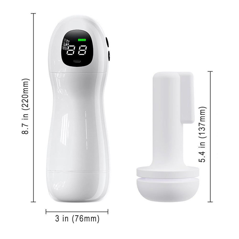 Clean, sleek, and surprisingly powerful — the Loverole White Sucking & Vibrating Masturbator is designed to turn a quiet evening into a fully upgraded pleasure session. Inside the elegant white shell, a soft TPE sleeve surrounds you with a lifelike feel while the internal system combines vibration and suction to create waves of stimulation. The 6 suction modes and 3 speed levels allow you to move from slow teasing pulses to stronger rhythmic sensations, giving you complete control over the experience. The device uses a pressure-based suction system that gently tightens and releases as the modes change, creating a dynamic sensation that keeps things interesting. Pair that with vibration and the result is a layered experience that builds gradually and keeps you engaged from start to finish. To add a playful touch, the built-in voice playback creates an immersive atmosphere, while the digital display lets you see the current mode and intensity at a glance. The waterproof design also makes cleanup quick and easy after every session. Stylish, compact, and packed with features, this Loverole stroker is ready whenever you are. For the best experience, apply plenty of water-based lubricant before use to enhance comfort and maximize sensation. What’s in the Box Loverole White Sucking & Vibrating Male Masturbator × 1 Charging Cable × 1 Manual × 1 |